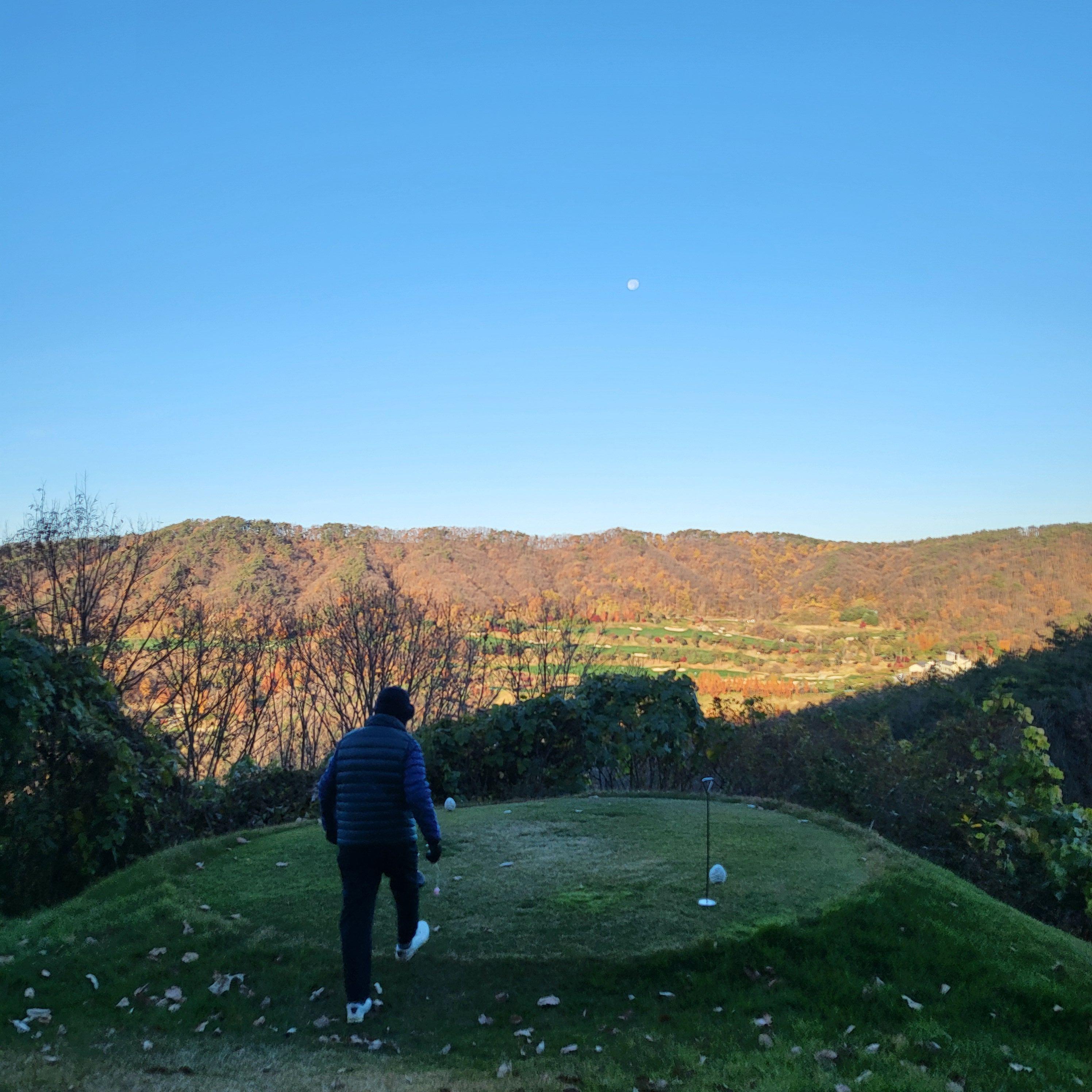 늦가을 마지막 골프 라운딩 이다. 쌀쌀한 바람이 불고 있고, 페어웨이에는 낙엽이 나뒹굴고 있다.